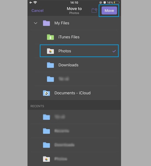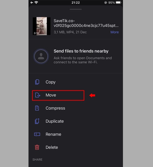 Navigate to the recently downloaded video, tap on the three-dot icon below the video, then choose Move → Photos to transfer the video to the Photos app. Your video will now appear in the Photos app.