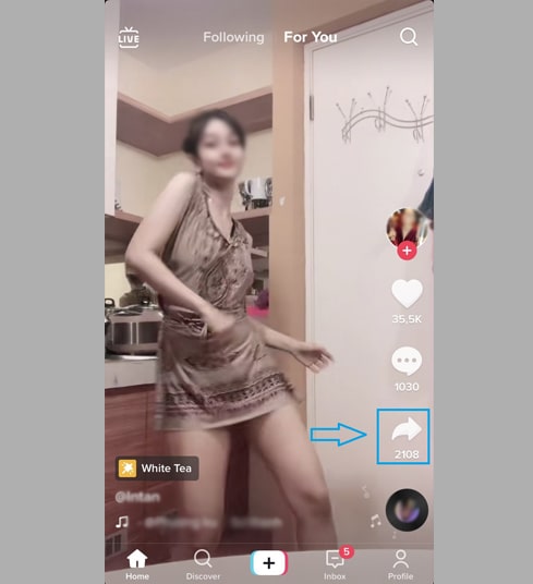 Step 1: Open the TikTok or Douyin app, find the video you want to download, and press the Share icon.