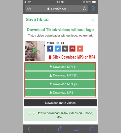 Step 3: Press the Download MP4 or Download MP3 button to save the video to your device.