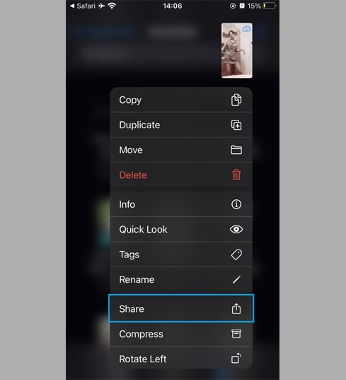 Step 7: Navigate to the recently downloaded video and press and hold on the video, a menu will appear. Press the Share button.